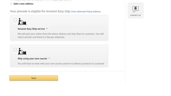 Step – 8: Next, select how you would like to ship your products. You can choose the easy-ship option if Amazon includes your pickup pin code in its shipping or you could select the self-ship option.