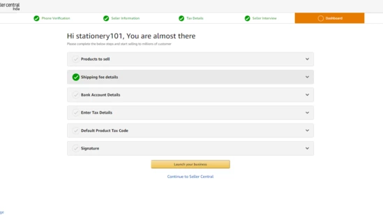 Step – 7: Head to the dashboard where you can start calculate your shipping fees, complete your bank account details, tax information and upload your signature